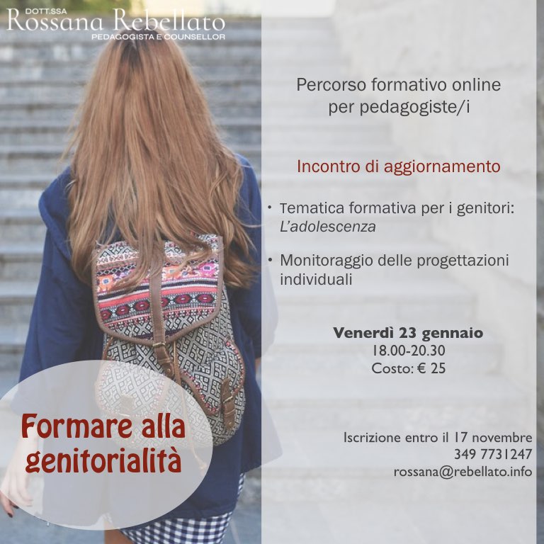 In questo incontro la tematica formativa riguarda L'ADOLESCENZA.